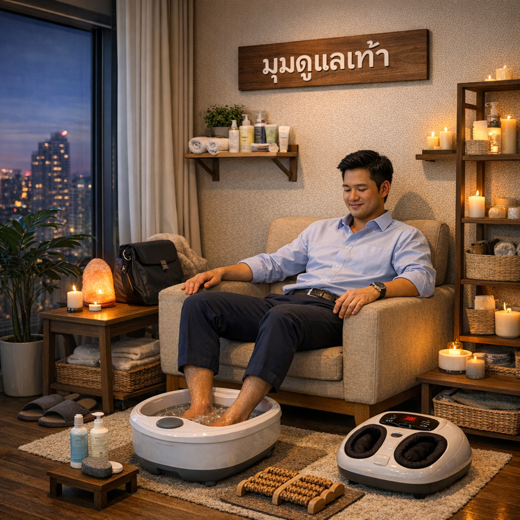 หลังเลิกงานในแต่ละวัน คนวัยทำงานสมัยใหม่จำนวนมากต้องแลก “ความก้าวหน้าในอาชีพ” กับ “ชั่วโมงการยืน เดิน และเคลื่อนไหว” แบบไม่รู้ตัว ไม่ว่าจะเป็นพนักงานออฟฟิศที่เดินทั้งวัน ประชุมต่อเนื่อง วิศวกรที่ต้องขึ้นไซต์งาน พนักงานขายที่ยืนหน้าร้าน หรือเจ้าของกิจการที่ต้องวิ่งทั้งระบบ เท้าคืออวัยวะแรกที่รับภาระทั้งหมด แต่กลับเป็นอวัยวะสุดท้ายที่ถูกดูแล 🦶⏳ เมื่อกลับถึงบ้านหรือคอนโด หลายคนเลือกพักผ่อนด้วยการนั่งดูมือถือ ดูซีรีส์ หรือเข้านอนทันที